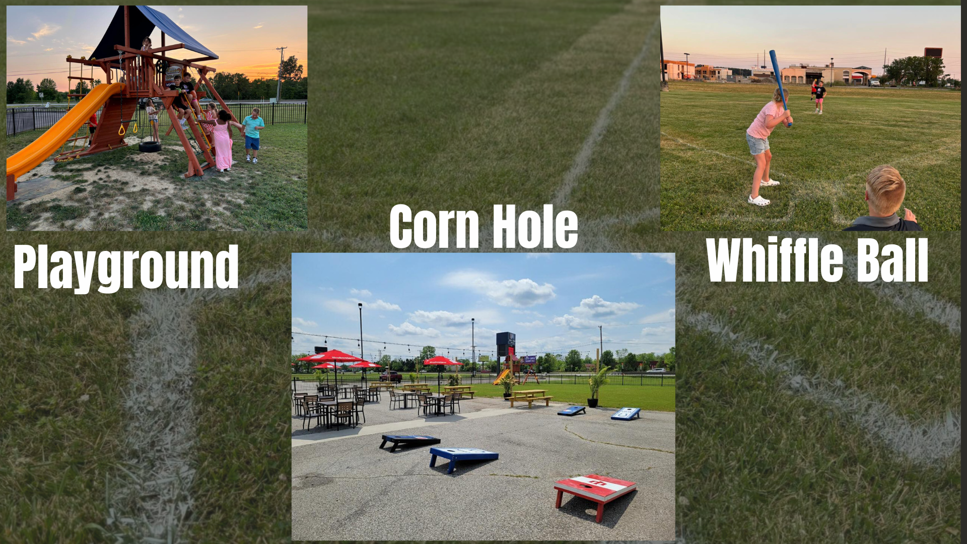Live music * karaoke * Cold drinks * Corn hole * playground * Wiffle ball field