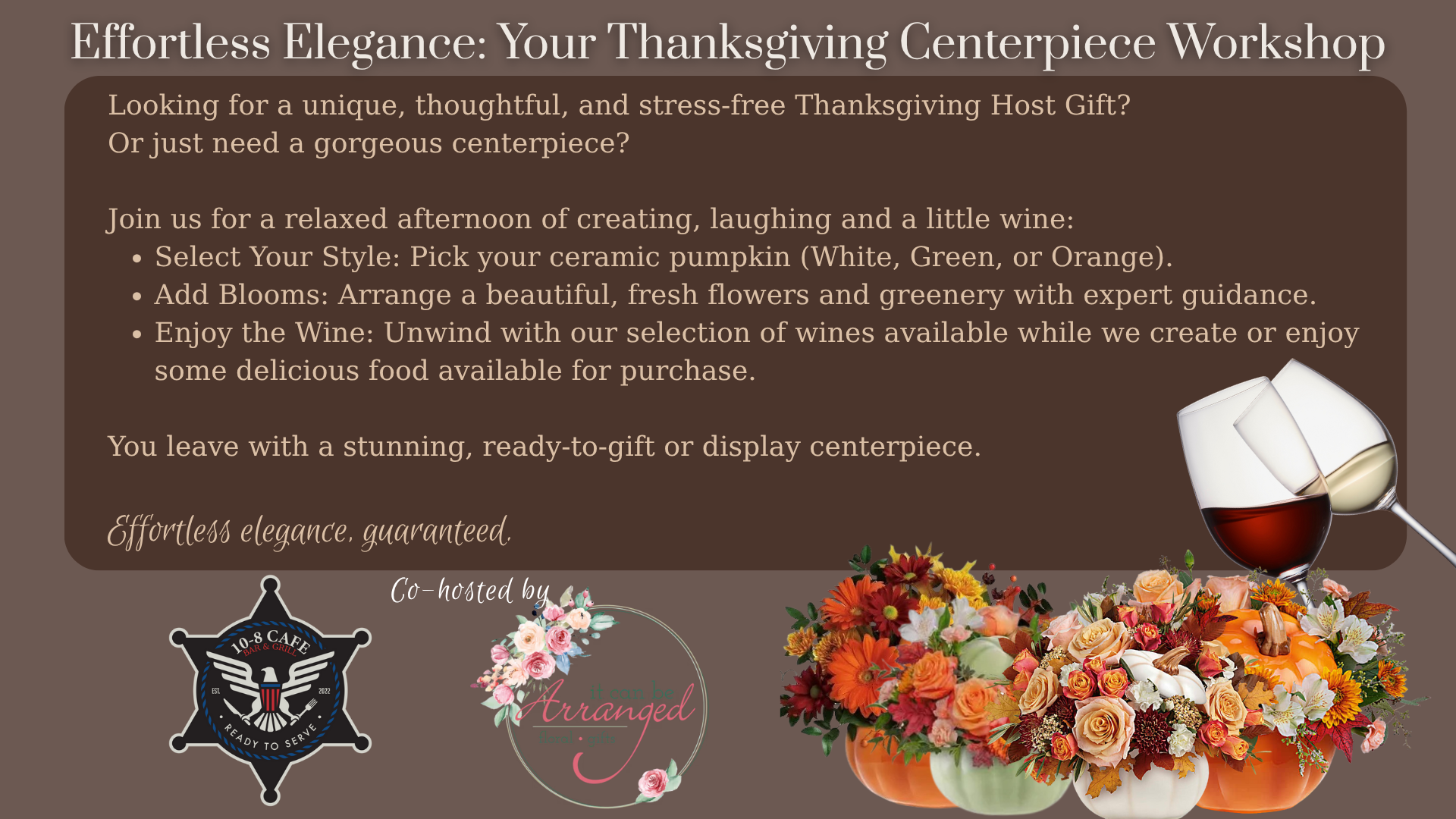 Join us for a unique experience where you’ll craft a stunning, ready-to-display centerpiece for the Thanksgiving.