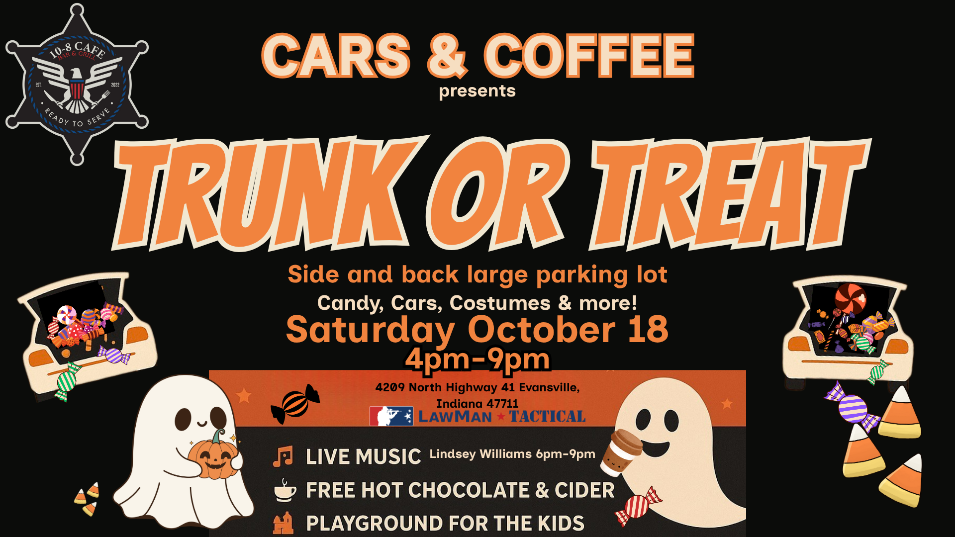 Bring your ghouls & Gents by for all treats and no tricks! Custom cars and trucks full of candy! Free hot chocolate & cider! live music with lindsey williams 6pm-9pm!